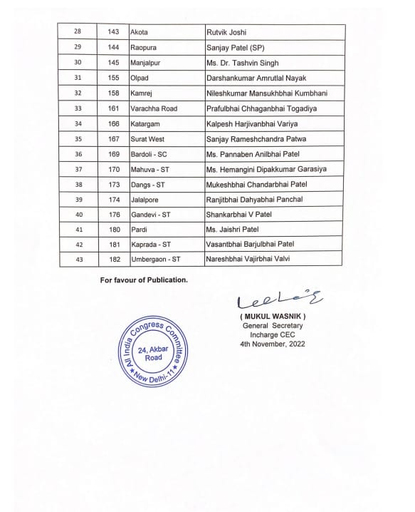गुजरातकांग्रेस पार्टी ने गुजरात विधानसभा चुनाव के लिए 43 उम्मीदवारों की पहली सूची की घोषणा की by editorNovember 4, 20220 Share0