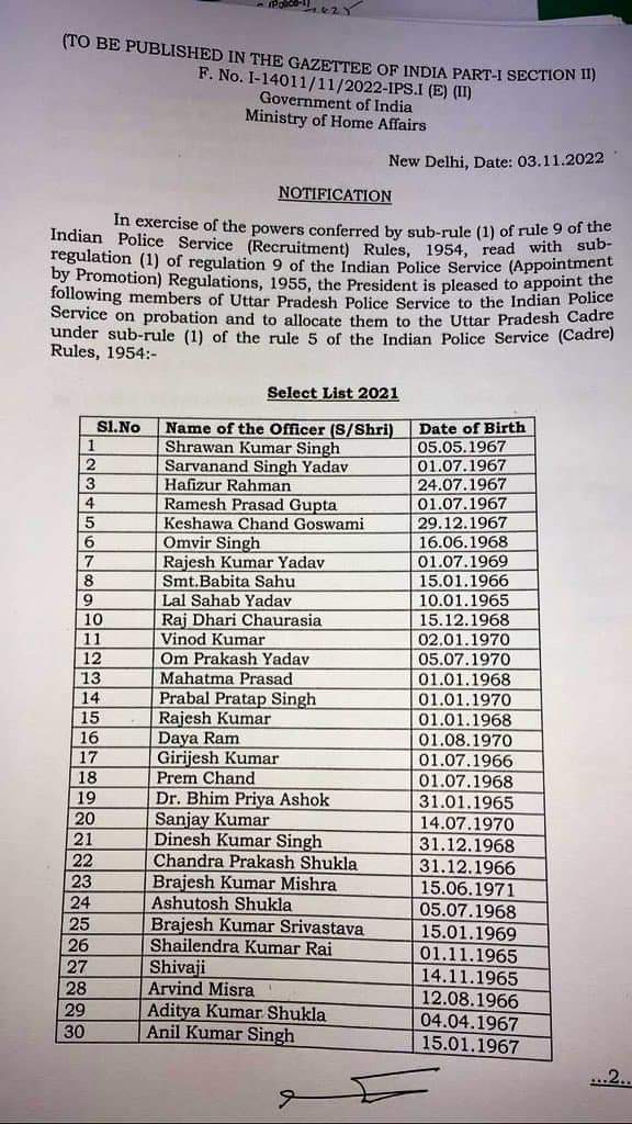 उत्तरप्रदेशउत्तर प्रदेश- UP के 30 PPS अफ़सर IPS बने,नोटिफिकेशन जारी !! by editorNovember 4, 20220 Share0