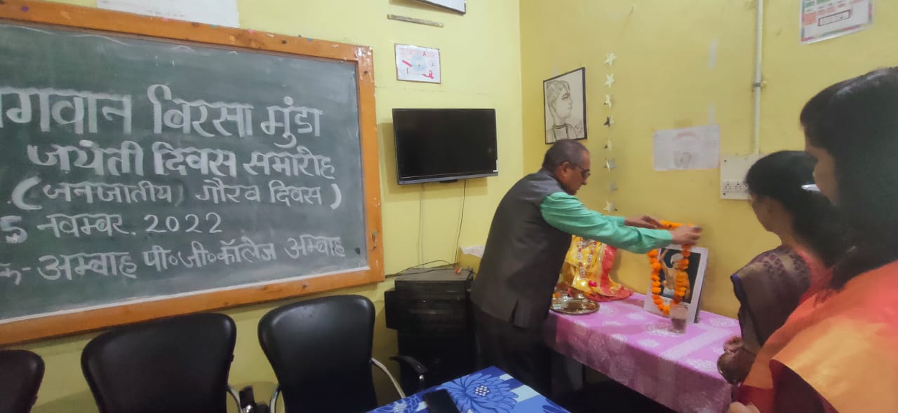 यह उद्बोधन अम्बाह पीजी कॉलेज के हिंदी विभाग में आयोजित विरसा मुंडा जयंती पर आयोजित संगोष्ठी कार्यक्रम में महाविद्यालय के प्राचार्य डॉ. शिवराज सिंह तोमर ने विद्यार्थियों को दिया। भगवान विरसा मुंडा के चित्र पर मालार्पण व दीप प्रजवल्लित किया गया।