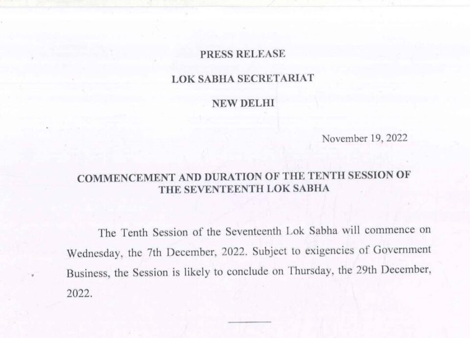 नई दिल्लीदिल्ली- लोकसभा का शीतक़ालीन सत्र सात दिसंबर से 29 दिसम्बर तक चलेगा !! by editorNovember 20, 20220 Share0