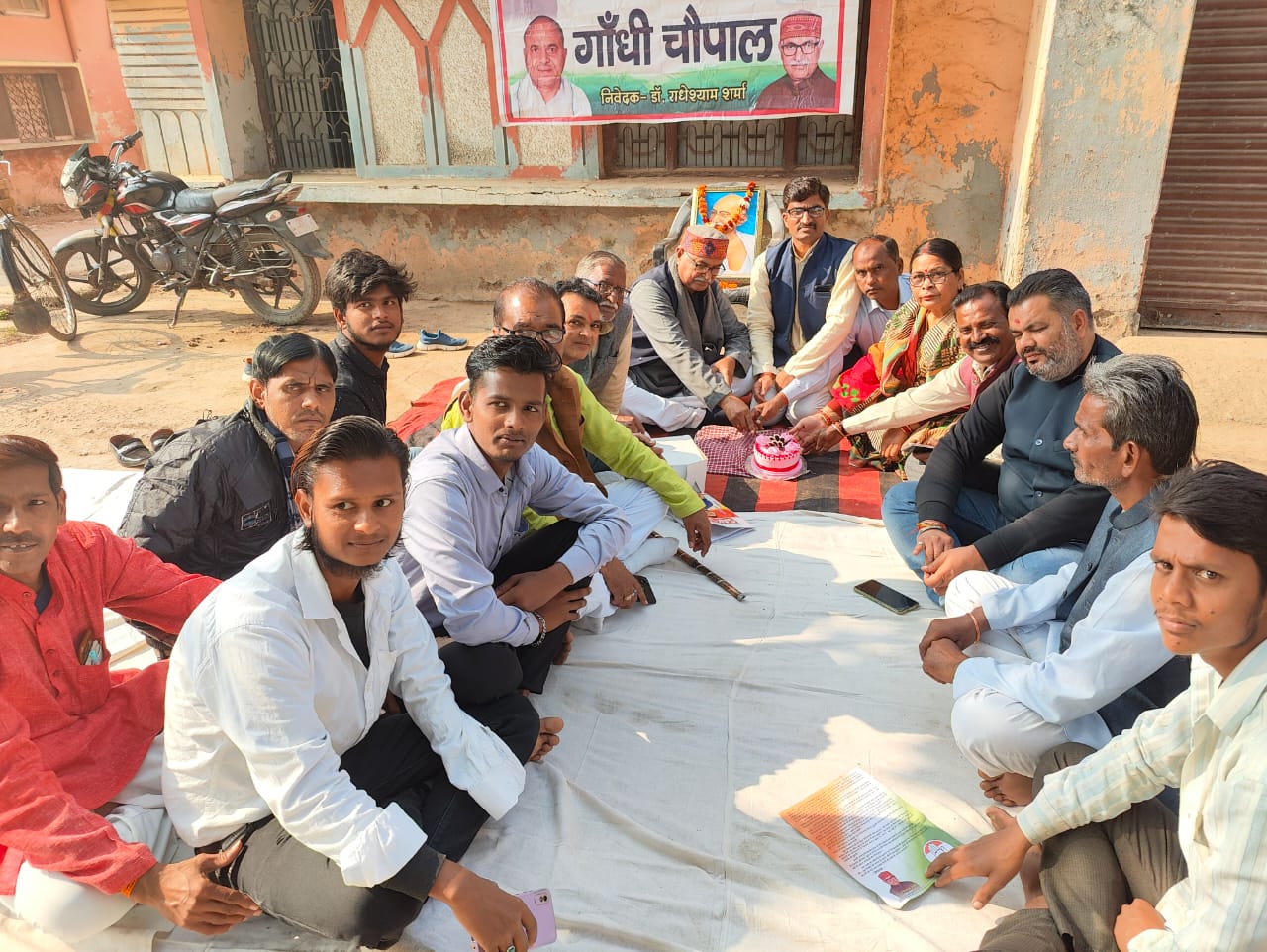 गांधी चौपाल के शुभारंभ में राष्ट्रपिता महात्मा गांधी जी की प्रतिमा पर माल्यार्पण कर पुष्पांजलि अर्पित की गई और राष्ट्रपिता गांधी जी का प्रिय भजन रघुपति राघव राम भी गाया गया कार्यक्रम के अंत में कांग्रेस की पूर्व राष्ट्रीय अध्यक्षा श्रीमती सोनिया गांधी के जन्मदिन केक काटकर मनाया गया