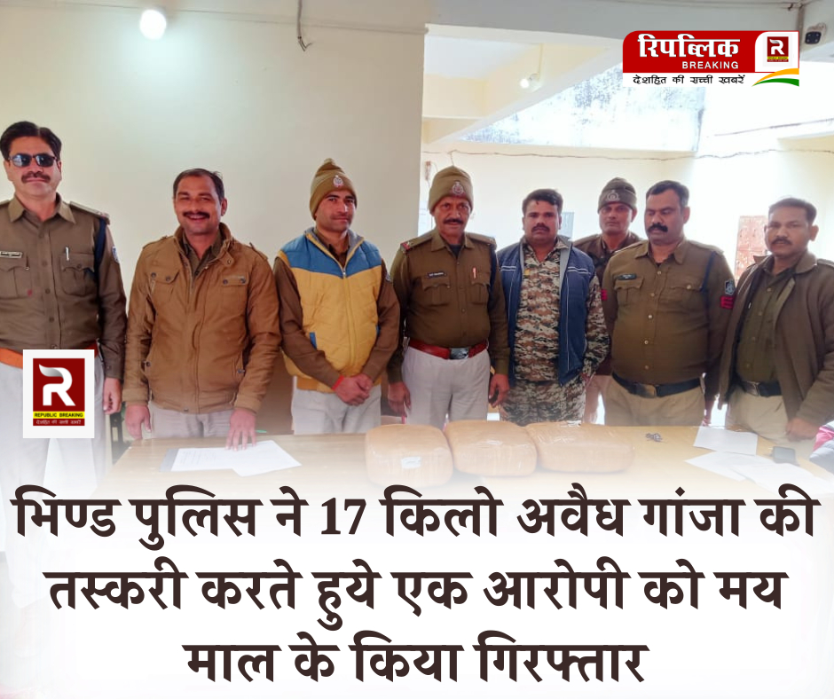 भिण्ड पुलिस अधीक्षक शैलेन्द्र सिहं चौहान के निर्देशन में अवैध मादक पदार्थो धरपकड हेतु समस्त राजपत्रित अधिकारी एवं समस्त थाना प्रभारियो को मुखबिर तन्त्र विकसित करने के लिये निर्देर्शित किया गया था इसी तारतम्य में अनुविभागीय अधिकारी मेहगावं आरकेएस राठौर के मार्गदर्शन में थाना प्रभारी मेहगावं निरीक्षक वरुण तिवारी को दिनांक 30.01.2023 को मुखविर द्वारा सूचना प्राप्त हुयी उक्त सूचना पर से थाना प्रभारी मेहगावं खनैता डयूटी होने से सउनि रामप्रकाश एवं सायबर सेल टीम के साथ मुखबिर की सूचना पर तत्काल कार्यवाही करने हेतु निदेश दिये उक्त गठित टीम मुखबिर द्वारा बताये गये स्थान सोनी रेलवे स्टेशन पर पहुँची जहाँ मुखबिर के द्वारा बताये गये हुलये जैसा एक व्यक्ति सोनी रेलवे स्टेशन के पास काले रंग का बैग लिये हुये खड़ा दिखाई दिया। उक्त व्यक्ति पुलिस टोम को आता देख भागने लगा जिसे पुलिस टीम द्वारा चारो तरफ से घेराबन्दी कर पकड लिया गया तथा व्यक्ति से उसका नाम व पता पूछने पर अपना नाम बसीम पुत्र भूरा खाँ उम्र 26 साल नि0 ग्राम तेवडा थाना ककरौली जिला मुजफ्फर नगर उ0प्र0 का होना बताया गया एवं पुलिस टीम द्वारा काले बैग की तलाशी लेने पर 03 पैकिट जो कि खाकी रंग के टैप मे लिपटे हुये थे पैकिट खोलने पर उसमें 16 किलो 995 ग्राम अवैध मादक पदार्थ (गाँजा ) भरा हुआ मिला। उक्त घटना के सम्बन्ध मे आरोपी को गिर0 कर अवैध मादक पदार्थ (गांजा) जप्त किया जाकर थाना मेहगावं मे अपराध क० 15 / 23 धारा 8 / 20 एनडीपीएस एक्ट का अपराध पंजीबद्ध कर विवेचना में लिया गया। उक्त अपराध के सम्बन्ध मे आरोपी से पूछताछ की जा रही है जिसमें और भी खुलाशा होने की सम्भावना है तथा गाँजा सप्लाई करने वाले व्यक्ति के बारे मे पूछताछ जारी है। *बरामद मशरुका* 01. गाँजा 16 किला, 995 ग्राम 02. दो मोबाईल कुल बरामद माल – मशरुका की अनुमानित कीमत- 3,60,000 /- रुपये *सराहनीय भूमिका* थाना प्रभारी निरीक्षक वरुण तिवारी, उ0नि0 दीपेन्द्र यादव, उ0नि0 वैभव तोमर, स० उ०नि० सत्यवीर सिहं, सउनि रामप्रकाश शर्मा, सउनि अशोक तिवारी, प्रआर0 982 प्रमोद पाराशर, प्रआर0 566 महेश कुमार, प्रआर0 315 सतेन्द्र यादव, प्रआ0 712 अजय मोर्य, प्रआर0 740 प्रहलाद सिंह, आर0 281 आनन्द दीक्षित, आर0 1165 पदम सिंह, आर0 637 राहुल यादव, आर0 153 यतेन्द्र राजावत, आर0 69 हरपाल, आर0 1220 अवधेश सिहं आर० 312 हेमन्त सिंह आर0 1359 अवनेश चौहान की महत्वपूर्ण भूमिका रही है।
