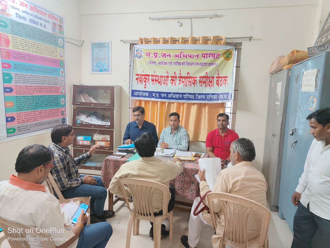 दतिया @Republicnews.com/ Ramjisharan Rai Datia>>>>>>>>>>नवांकुर संस्थाओं की त्रैमासिक समीक्षा की बैठक का आयोजन योजना, आर्थिक एवं सांख्यिकी विभाग मप्र जन अभियान परिषद दतिया कार्यालय में आयोजित की गई। आयोजित बैठक की अध्यक्षता मुनेन्द्र शेजवार जिला समन्वयक ने करते हुए उपस्थित नवांकुर संस्थाओं के पदाधिकारियों को निर्देशित करते हुए परिषद व संस्था के साथ हुए करार के अनुसार गतिविधियों को प्रमुखता से कर संचालित शासकीय जन कल्याणकारी विभिन्न योजनाओं का व्यापक प्रचार-प्रसार कर पात्र हितग्राहियों को लाभान्वित कराएं।