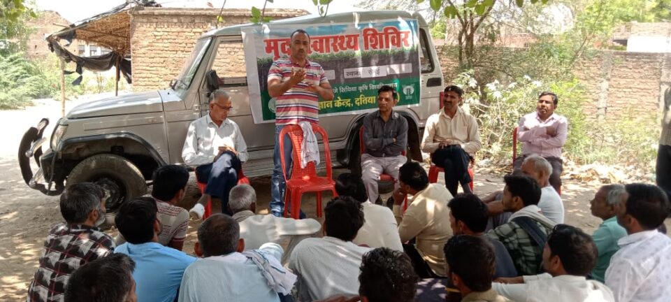 किसानों को जागरूक करने हेतु कृषि विज्ञान केंद्र दतिया, स्वदेश ग्रामोत्थान समिति (नवांकुर संस्था) व ग्राम विकास प्रस्फुटन समिति के संयुक्त तत्वावधान में ग्राम सेंमई में मृदा स्वास्थ्य शिविर का आयोजन ग्राम पंचायत भवन में किया गया।