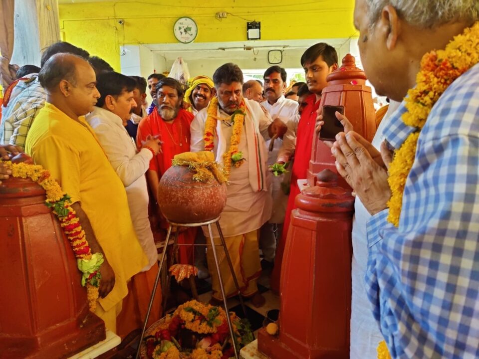 कर्नाटक सरकार के डिप्टी सीएम डी.के.शिवकुमार का हवाई पटटी पर स्थानीय नेताओं ने किया जोरदार स्वागत