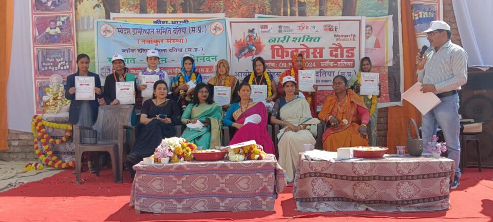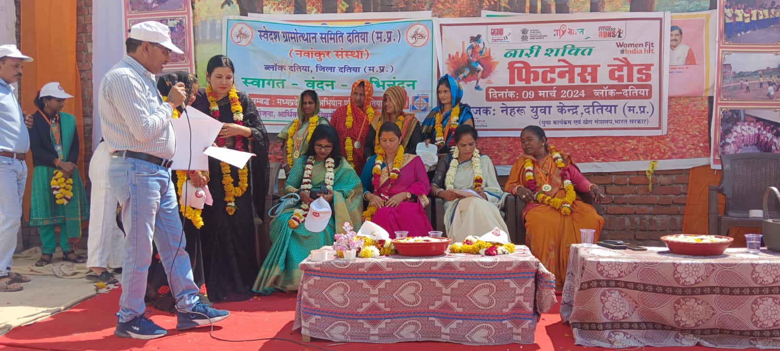 आयोजित नारी शक्ति फिटनेस रन-2024 कार्यक्रम में मुख्यअतिथि श्रीमती अम्बिका भागवत (कार्यक्रम अधिकारी मनरेगा जिला पंचायत दतिया), विशिष्ट अतिथि सुश्री क्रांति राय (जिला प्रभारी महिला मोर्चा एवं जिला मंत्री भाजपा), श्रीमती रानी शर्मा (अध्यक्ष दुर्गा वाहिनी जिला दतिया) एवं श्रीमती शकुंतला जाटव भाजपानेत्री व समाजसेवी) रहीं। कार्यक्रम की अध्यक्षता श्रीमती दीप्ति सिंह गुर्जर (प्रधानाचार्य श्री रामनाथ पब्लिक स्कूल दतिया व सह मंत्री क्रीड़ा भारती) ने की।