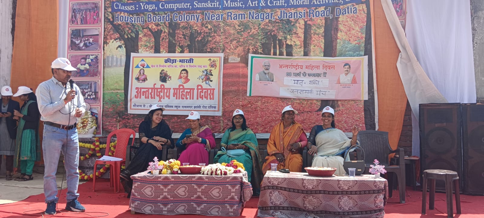 स्वदेश संस्था संचालक रामजीशरण राय में संवैधानिक रूप से प्रदत्त महिला अधिकारों, संचालित अधिनियमों व समाज में महिलाओं के विशिष्ट योगदान के बारे में विचार व्यक्त किए। कार्यक्रम का सफल संचालन डॉ. मुकेश सिंह गुर्जर ने करते हुए क्रीड़ा भारती के बारे में जानकारी दी। आभार व्यक्त अशोककुमार शाक्य मेंटर यूथ क्लब दतिया ने किया।