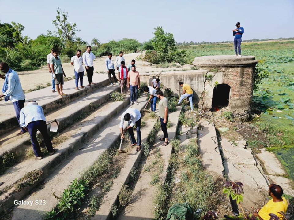 अभियान के तहत जनसहयोग से तालाब की साफ-सफाई एवं जलकुम्भी हटाने में श्रमदान किया गया।