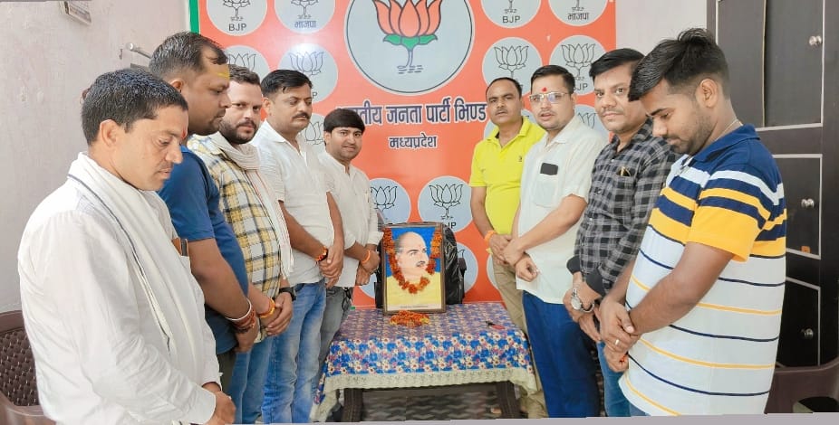 भिंड : भारतीय जनता पार्टी के कार्यकर्ताओं ने जिला कार्यालय पर जनसंघ के संस्थापक डॉ श्यामा प्रसाद मुखर्जी की पुण्यतिथि बलिदान दिवस के रूप में मनाई।इस अवसर पर भाजपा कार्यकर्ताओं ने डॉ श्याम प्रसाद मुखर्जी की तस्वीर पर माल्यार्पण कर श्रद्धा सुमन अर्पित किए।