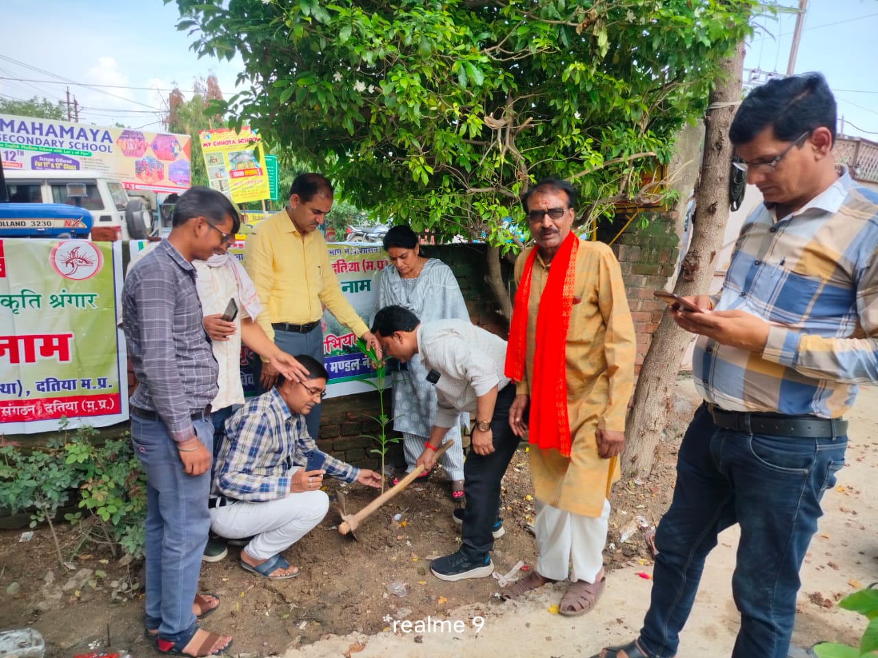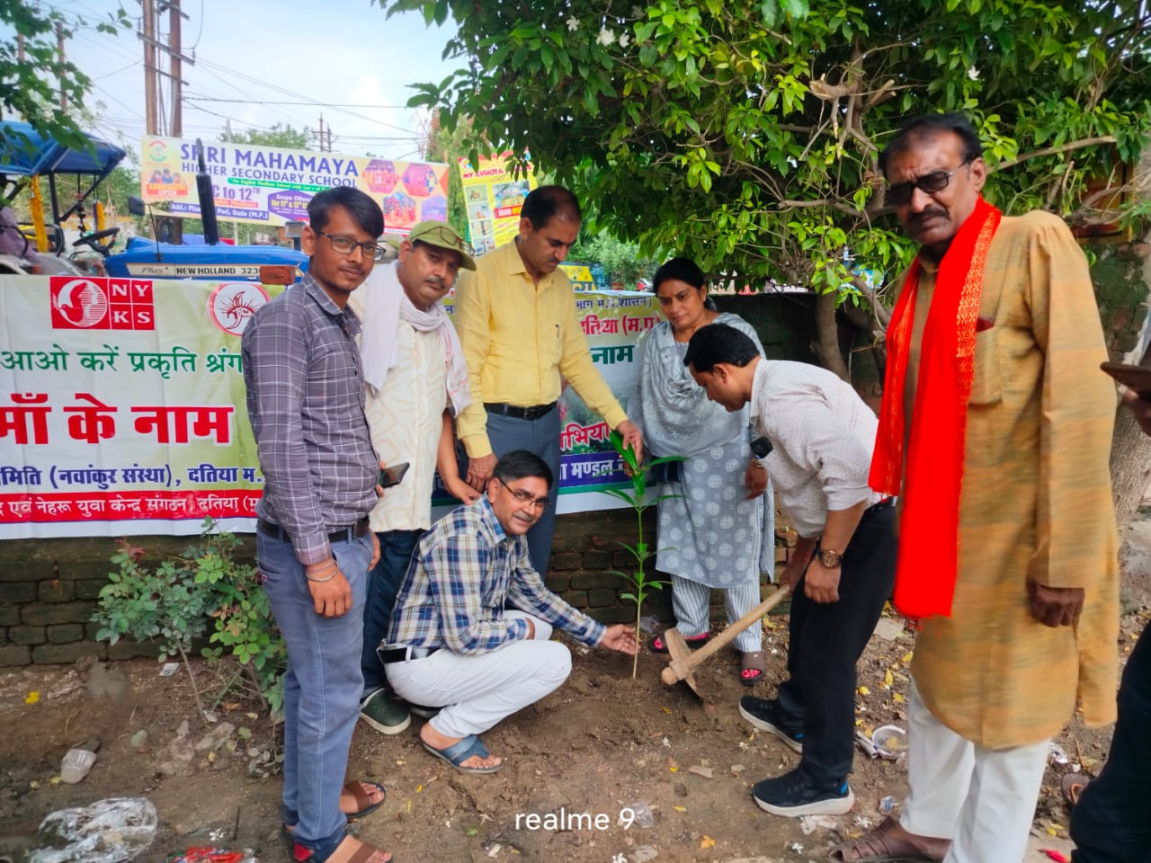 दतिया @Republicbreakingindianews.com>>>>>>>>>>>>>>> मध्यप्रदेश शासन के निर्देशानुसार “एक पेड़ माँ के नाम अभियान” के अन्तर्गत मध्यप्रदेश जन अभियान परिषद की कार्ययोजनानुसार नवांकुर संस्था स्वदेश ग्रामोत्थान समिति, विवेकानंद युवा मंडल दतिया एवं ग्राम विकास प्रस्फुटन समितियों के संयुक्त तत्वावधान में श्री रामचेरे बाबा मंदिर दक्ष प्रजापति समाज के प्रांगण में पौधरोपण कार्यक्रम आयोजित किया गया।