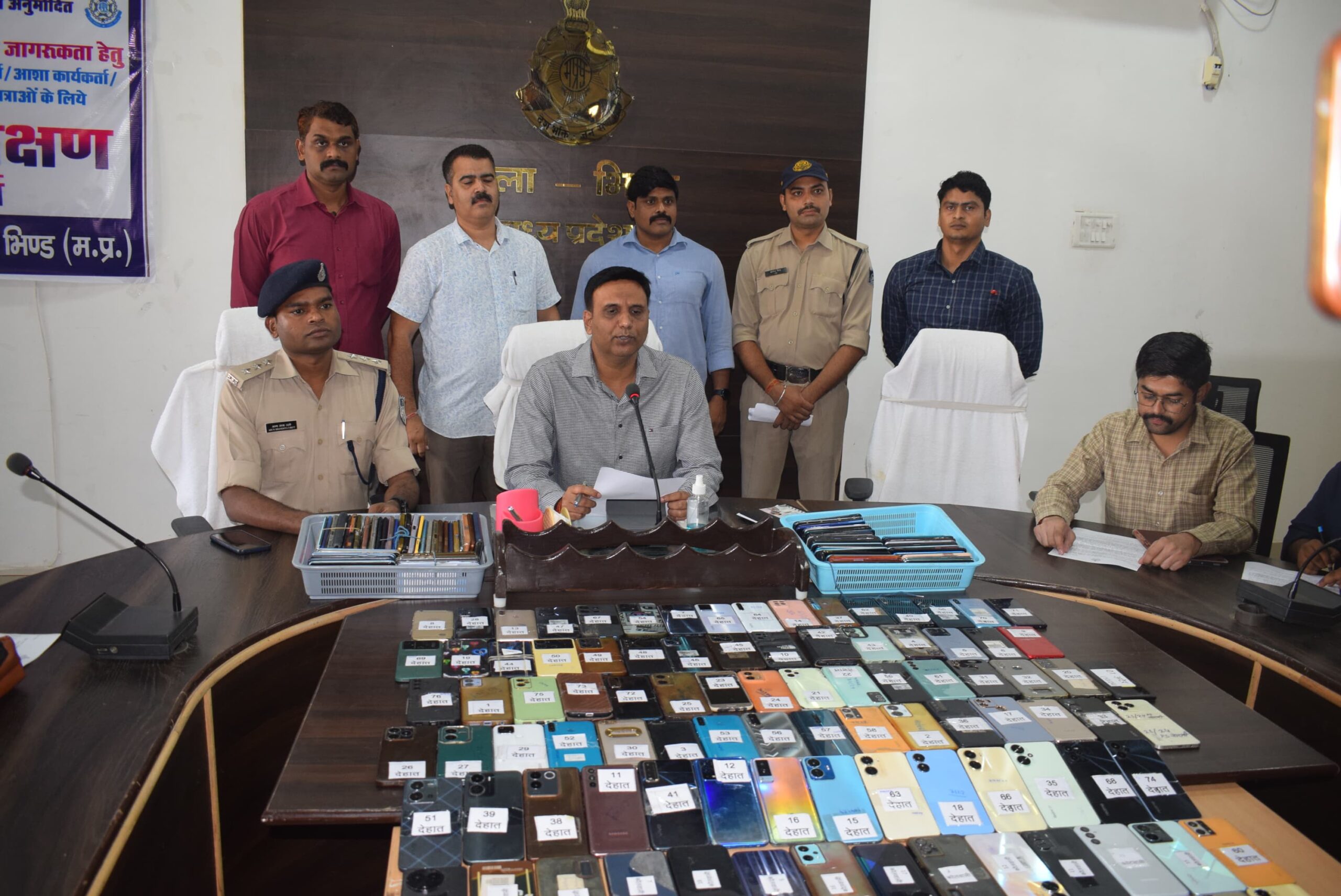 मोबाईलों को ट्रैस कर बरामद किया गया है जिनकी अनुमानित कीमत 51,00,000 रुपये है। उक्त सभी मोबाईल को जिला भिण्ड के अलग-अलग थाना क्षेत्रों से तथा कई राज्यो (उ०प्र०, गुजरात, दिल्ली, राजस्थान, महाराष्ट्र, झारखण्ड, केरल, असम, छत्तीसगढ) से बरामद किये गये जो कि रीयलमी, ओपो, वीवो, एमआई, सैमसंग, टैक्नों, इनफिनिक्स, मोटोरोला, बनप्लरा आदि कम्पनी के हैं, जिनका आज दिनांक 07.10.24 को पुलिस कन्ट्रोल रुम जिला भिण्ड में आयोजित कॉफेन्स में भिण्ड पुलिस के वरिष्ठ अधिकारियों, सायबर सेल की टीम एवं थानों की टीम द्वारा मोबाईल मालिकों को सुपुर्द किया गया है।