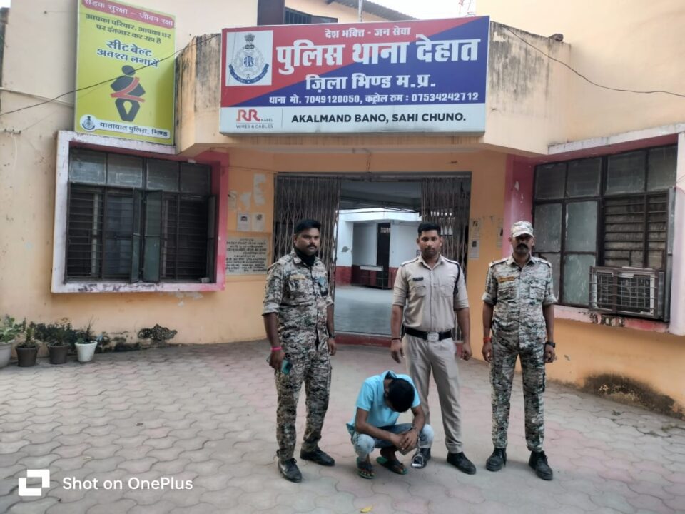 पुलिस अधीक्षक भिण्ड डा. असित यादव के मार्गदर्शन व अतिरिक्त पुलिस अधीक्षक संजीव पाठक के निर्देशन व नगर पुलिस अधीक्षक अरूण कुमार के निर्देशन में आगामी त्योहारों दृष्टिगत रखते हुये त्योहारों को शान्तिपूर्ण तरीके से सम्पन्न कराने हेतु शहर की सुरक्षा चाक चैबन्द कर दी गयी। इसी तारतम्य में थाना प्रभारी देहात निरी मुकेश शाक्य के नेतृत्व में दिनांक 18.10.24 को शाम करीब 06 बजे दबोहा रोड विरधनपुरा नहर पुलिया पर सुनसान एरिया में एक व्यक्ति को एक लोहे की देशी पिस्टल सहित गिरफ्तार किया गया है। आरोपी को अपने मंसूबे में कामयाब होने से पहले ही पुलिस ने पकड लिया। आरोपी के विरूद्ध अपराध पंजीबद्ध किया जाकर विवेचना में लिया गया। आरोपी के कब्जे से जप्त अवैध पिस्टल के सम्बन्ध में पूछताछ की जा रही है।