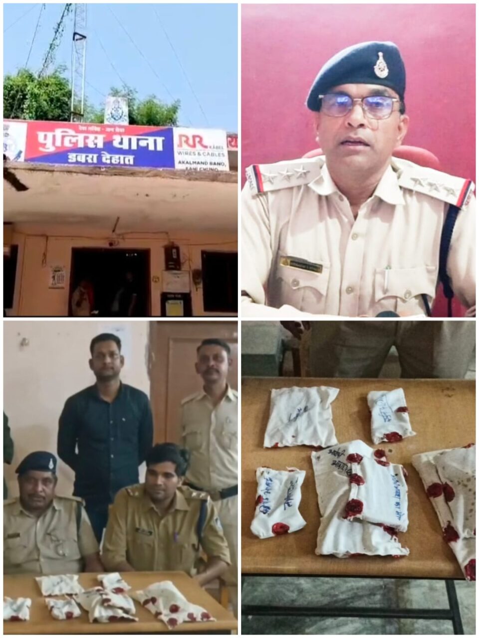 डबरा के देहात नवागत थाना प्रभारी निरीक्षक सुधाकर सिंह तोमर ने अवैध हथियारों और जिंदा राउंड के साथ पकड़ा बदमाशो को मुखबिर की सूचना पर से अवैध हत्यारों के साथ एक सफ़ेद कलर की कार जिस का नंबर MP33 C 3653 है । उसमें बैठकर बदमाश किसी वारदात को अंजाम देने भितरवार से डबरा आ रहे थे देहात थाना पुलिस ने चैकिंग कर उक्त कार चालक को रोका पुलिस को देख कर चालक ने कार की तेज गति को किया और तेज़