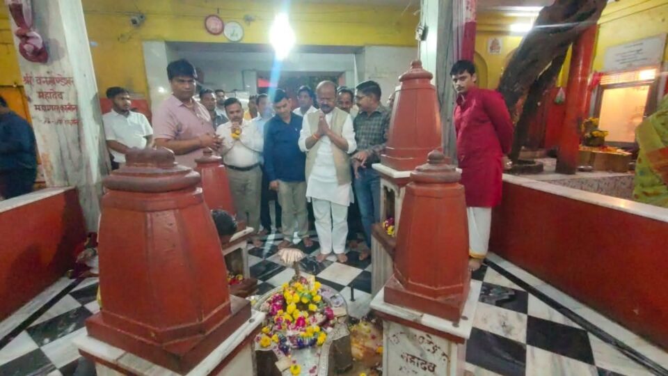 राज्यमंत्री दिलीप जायसवाल ने पीताम्बरा पीठ मंदिर पहुँचकर पूजा अर्चना की